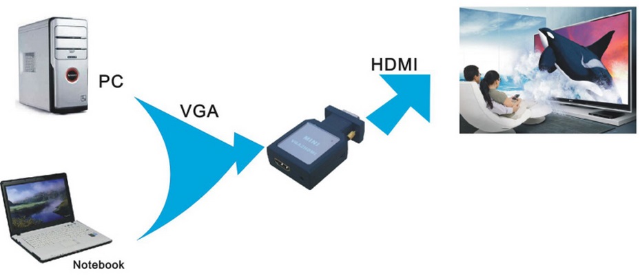 Perfecto para conectar un ordenador a un televisor LCD y así aprovecharlo mejor. El convertidor de HDMI transfiere también la señal de audio a través del puerto para audífonos de 3,5 mm.