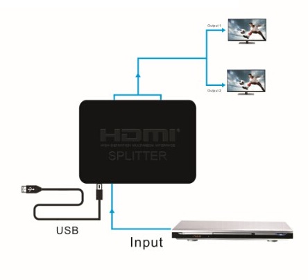 - 1 señal de entrada HDMI se divide en 2 señales HDMI de salida